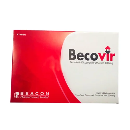 Tenofovir Disoproxil Fumarate, (Becovir) works for treating human immunodeficiency virus (HIV) infection and chronic (long term) hepatitis B virus (HBV). It decreases the amount of HIV and HBV in the blood. Tenofovir Disoproxil Fumarate is a doctor prescription (Tenofovir Disoproxil Fumarate) medicine.